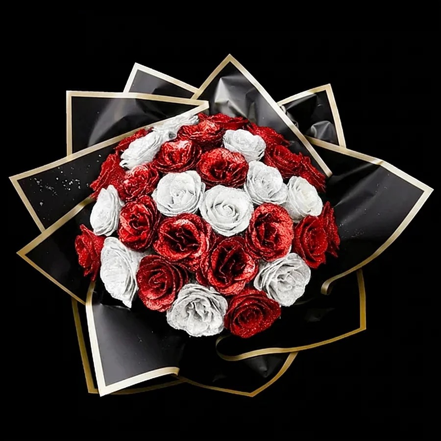 Svaka ruža u ovom buketu pažljivo je ručno izrađena od visokokvalitetne vrpce, s nježno složenim laticama i stručno oblikovanim detaljima. Suptilni odsjaj vrpce stvara profinjen i upečatljiv efekt, zbog kojeg buket djeluje luksuzno i zaista posebno.