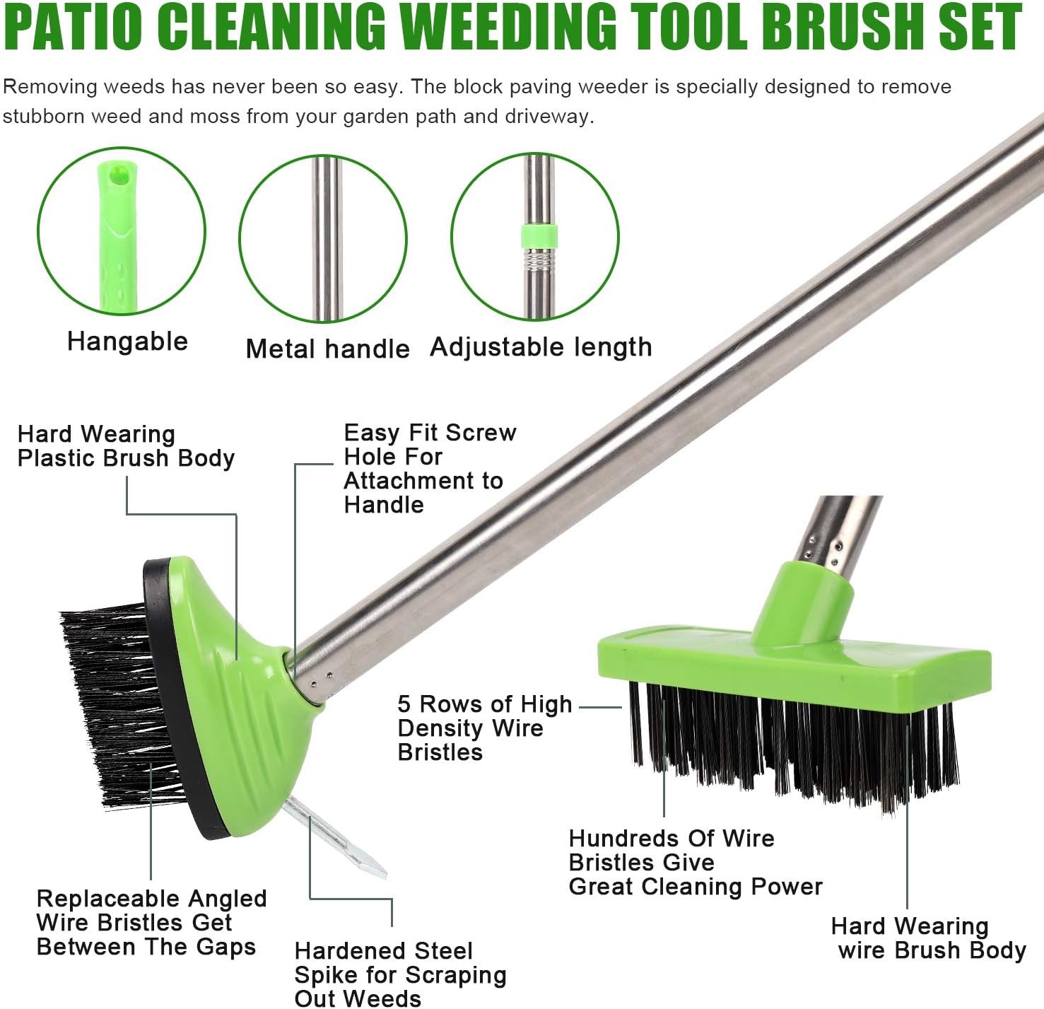 Opremljen specijaliziranim glavama s metalnim žicama, ovaj alat lako dopire duboko u fuge i razmake između popločanih ploča. Učinkovito uklanja korov, mahovinu i nečistoće, pomažući vam da održavate uredan i čist vanjski prostor.