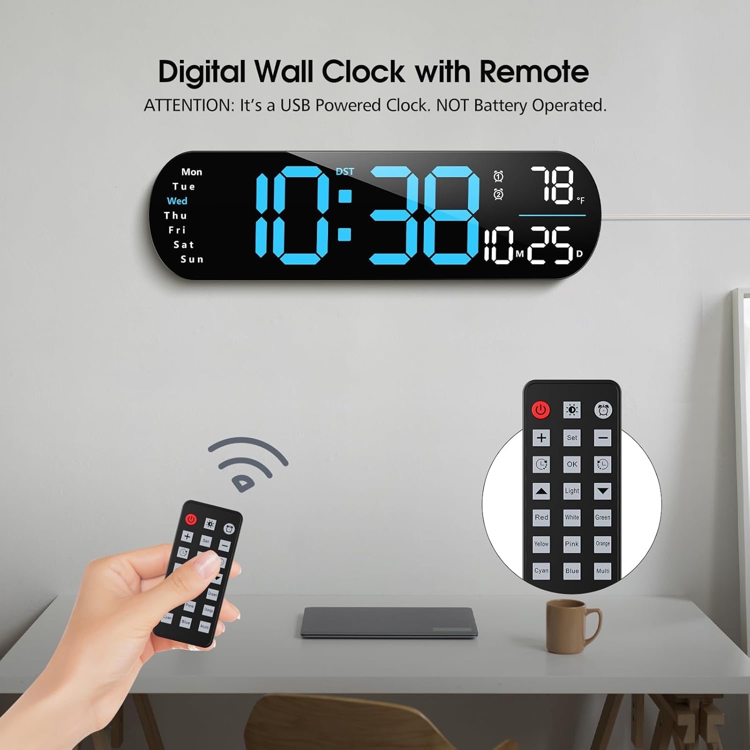 Paket uključuje: 1 digitalni zidni sat. 1 daljinski upravljač