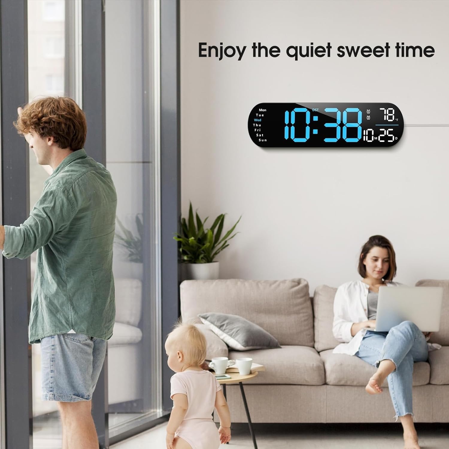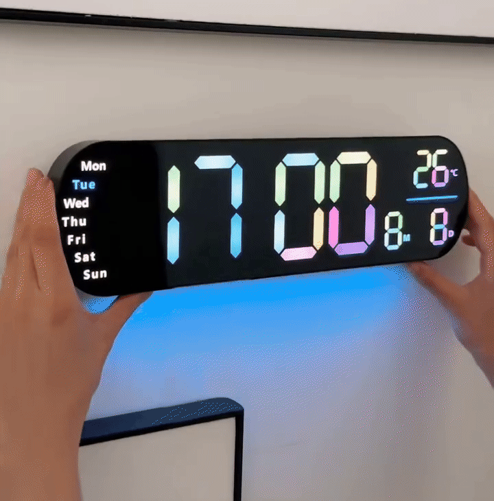 Ovaj višenamjenski digitalni zidni sat prikazuje vrijeme, temperaturu i datum na jednom jasnom, lako čitljivom zaslonu. Veliki, visokokontrastni brojevi posebno su korisni za starije osobe, jer omogućuju trenutno uočavanje važnih informacija.