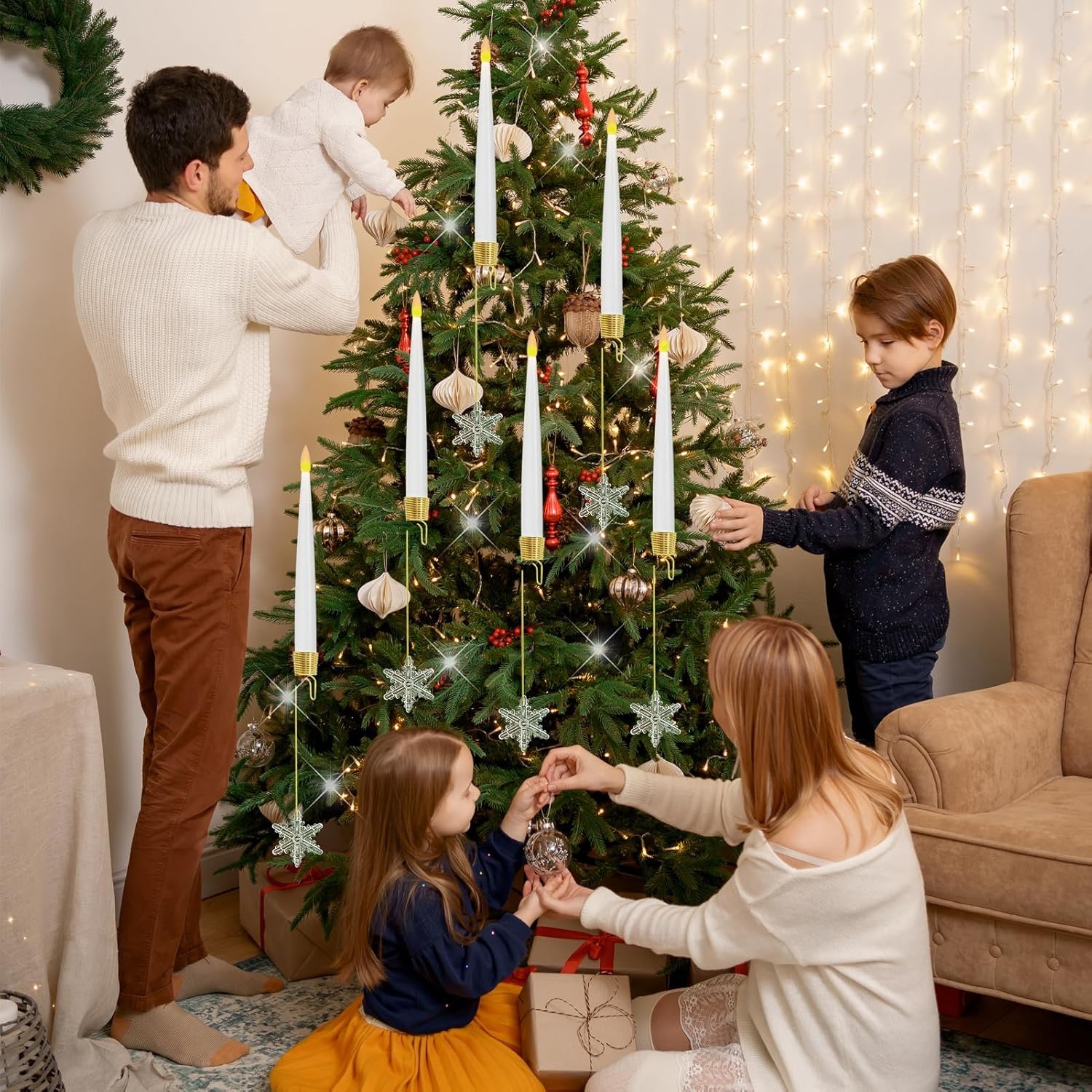 Set bezplamenskih LED svijeća LUSHFLAME će vašem božićnom drvcu dati blagdanski sjaj. Kombinacija tople bijele svjetlosti svijeća, zlatnih dekorativnih kuka i kristalnih kuglica stvara čarobnu atmosferu.