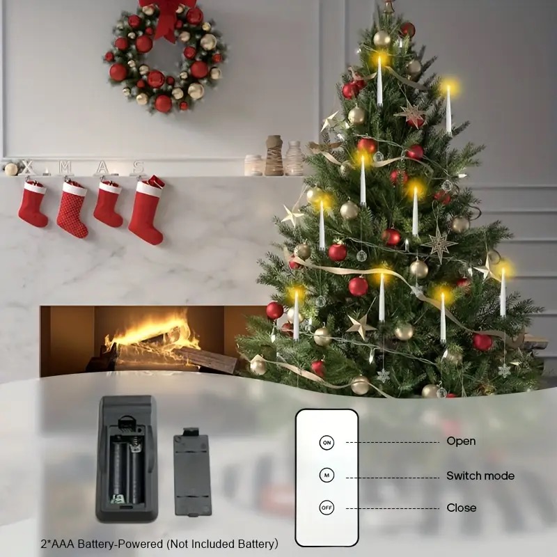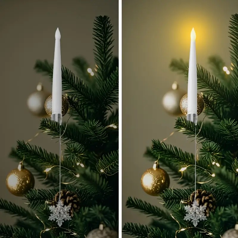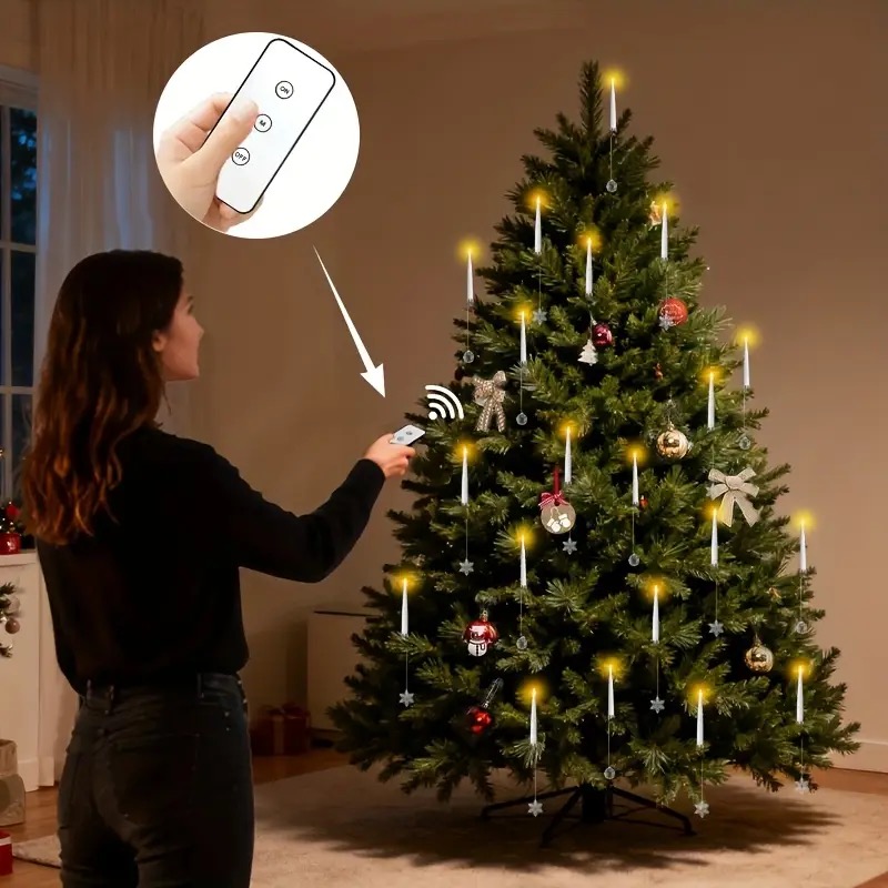 Svijeće se lako instaliraju pomoću zlatnih kukica. Priloženim daljinskim upravljačem mogu se uključiti, isključiti ili postaviti timer za automatsko isključivanje.