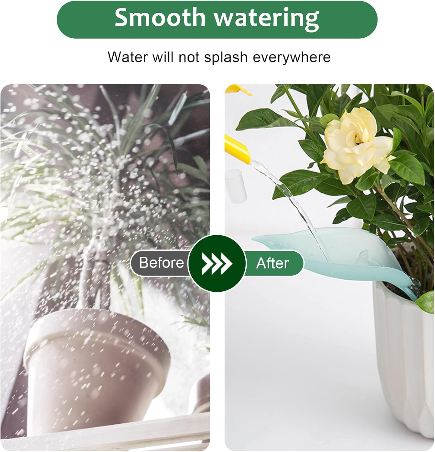 Ljevak usmjerava vodu izravno na lišće ili u zemlju, sprječavajući nepotrebno prskanje i izbjegavajući prekomjerno zalijevanje. Štedi vrijeme i trud, čineći njegu biljaka lakšom i ugodnijom.