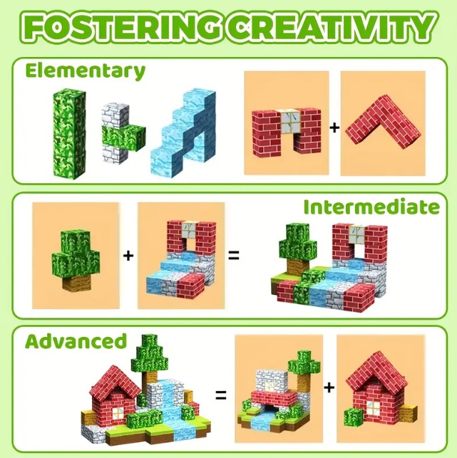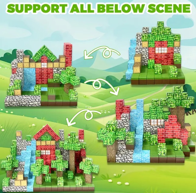 Svaka kocka sadrži snažne magnete za stabilne konstrukcije. Od jednostavnih tornjeva do složenih oblika, djeca mogu graditi slobodno i bez frustracija.