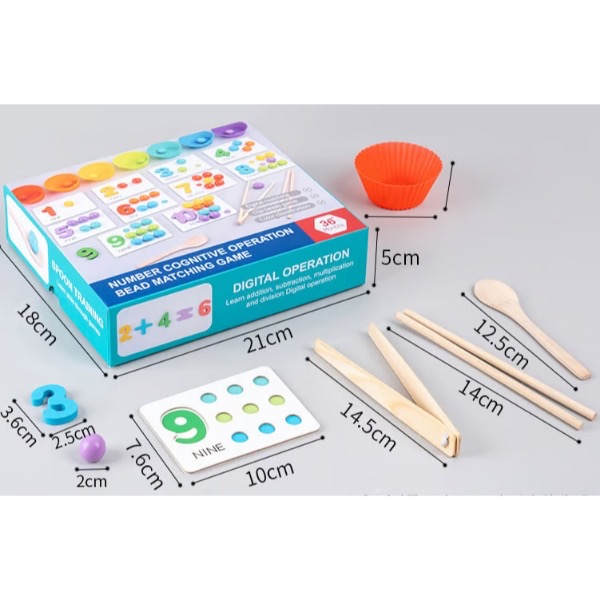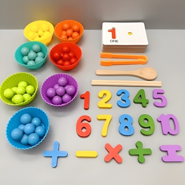 Od brojanja i grupiranja do uspoređivanja i jednostavnog zbrajanja, ovaj Montessori set potiče postepeno usvajanje matematike. Podržava rano razumijevanje aritmetike kroz taktilna i vizualna iskustva, čineći učenje strukturiranim i zabavnim.