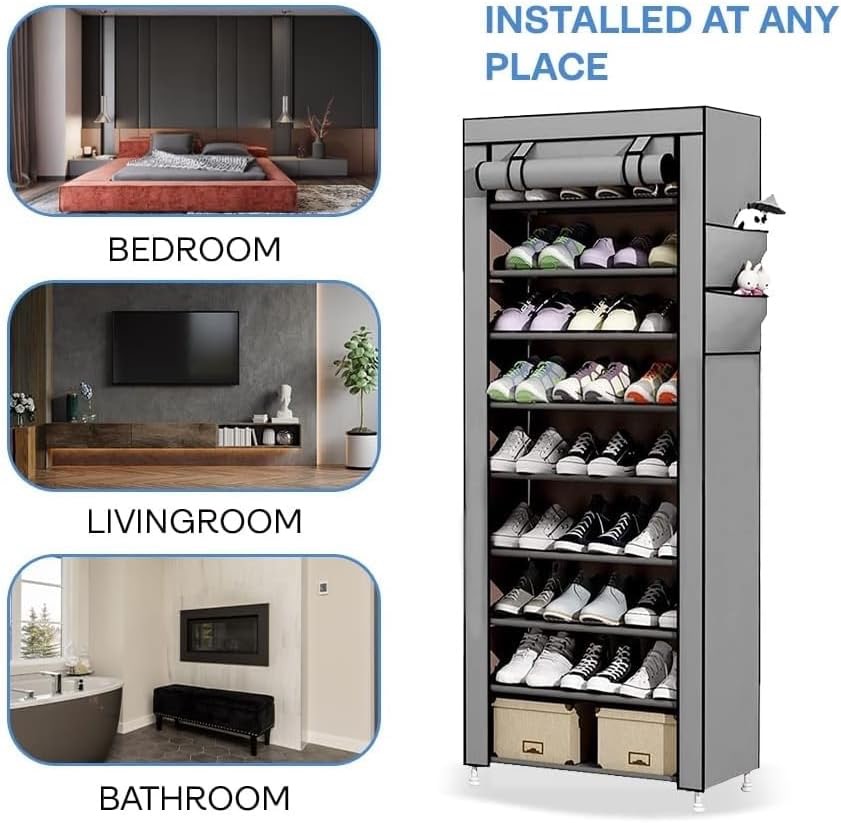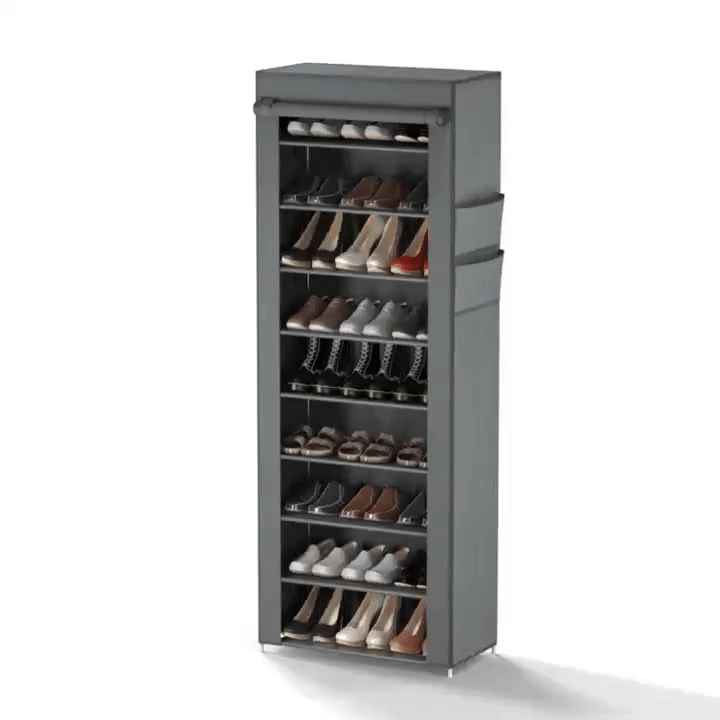 Izrađen od čvrstih željeznih cijevi i vodootporne, otporne na prašinu i vlagu netkane tkanine, ovaj organizator za cipele stvoren je da traje. Izdržljive tkanine imaju preklop sa zatvaračem i kopčama na čičak, koje štite vaše cipele od prašine i prljavštine i pritom održavaju uredan i elegantan izgled.