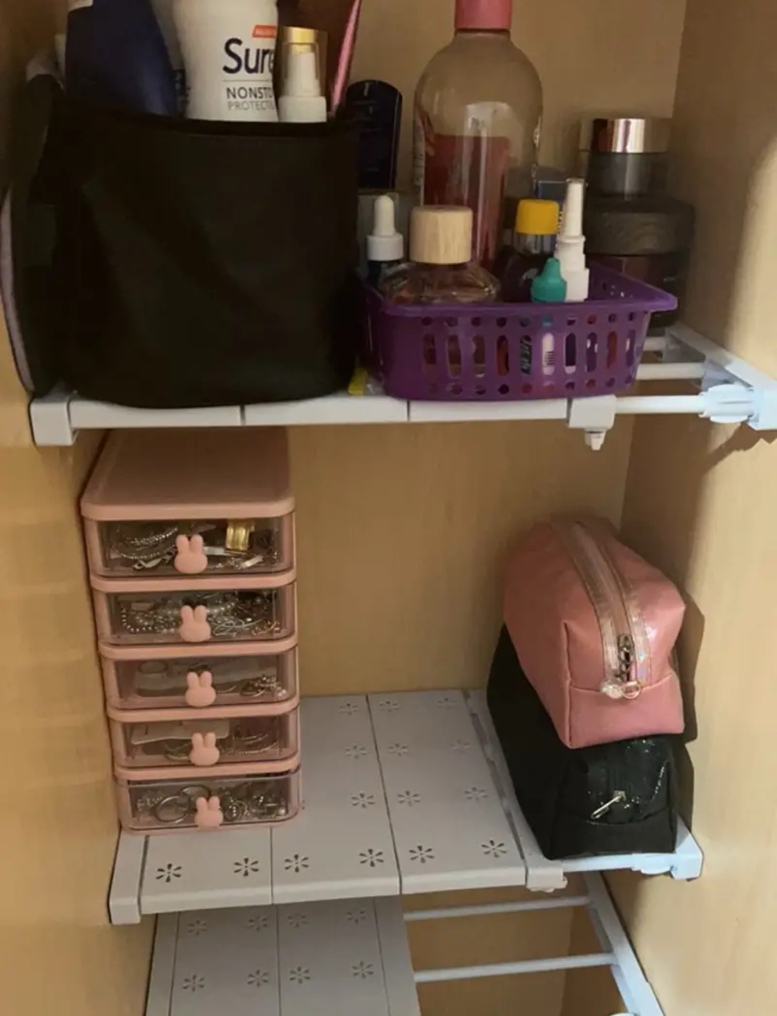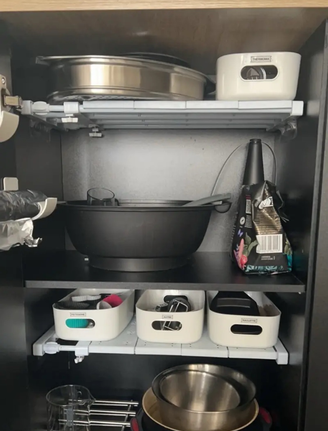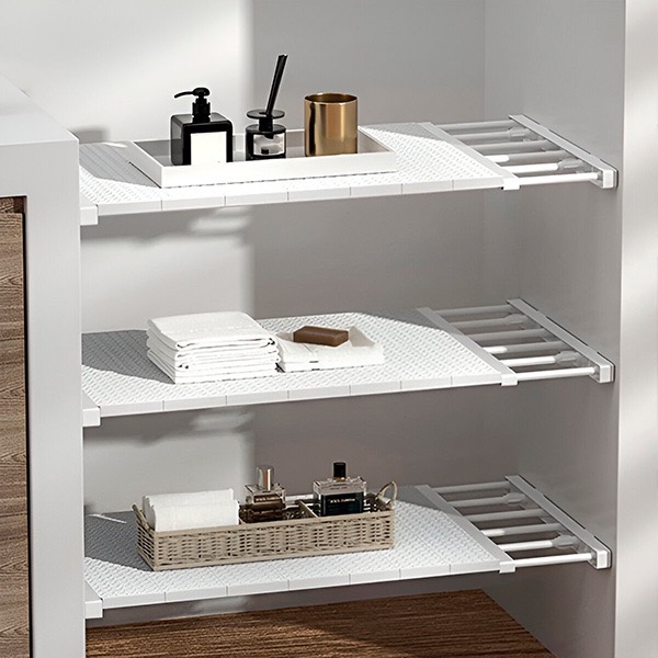 Produživi dizajn omogućuje vam da produžite policu i savršeno je prilagodite svom prostoru. Sa svojom pametnom i fleksibilnom strukturom maksimalno iskorištava svaki kutak, održavajući vaš dom urednim i bez nereda.