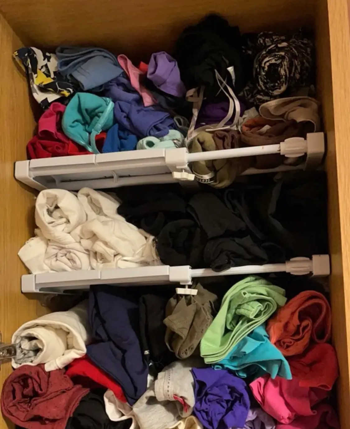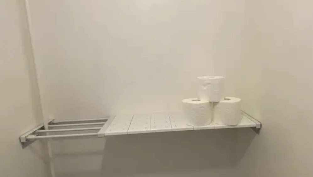 Podesite duljinu police prema svom ormaru i pričvrstite je jednostavnim okretanjem — bez upotrebe alata. Polica čvrsto stoji između stabilnih bočnih ploča ili zidova bez ikakvih oštećenja.