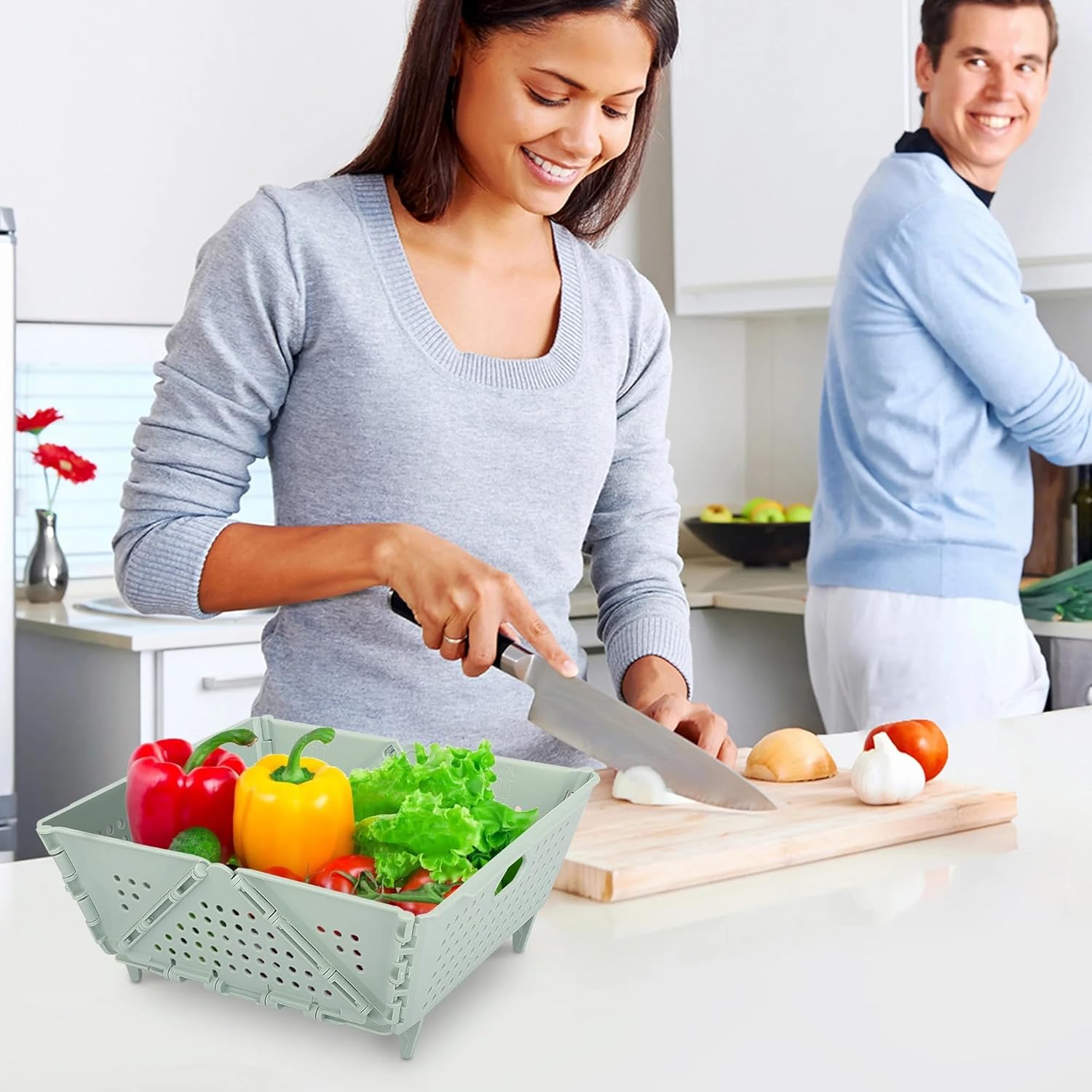 Inovativna patentirana unutarnja sklopiva struktura omogućuje da se košara u trenutku pretvori u praktično cjedilo, a nakon upotrebe sklopi na debljinu bilježnice. Tako štedite dragocjen prostor u ormaru ili ladici.