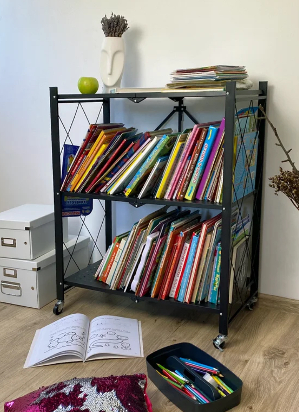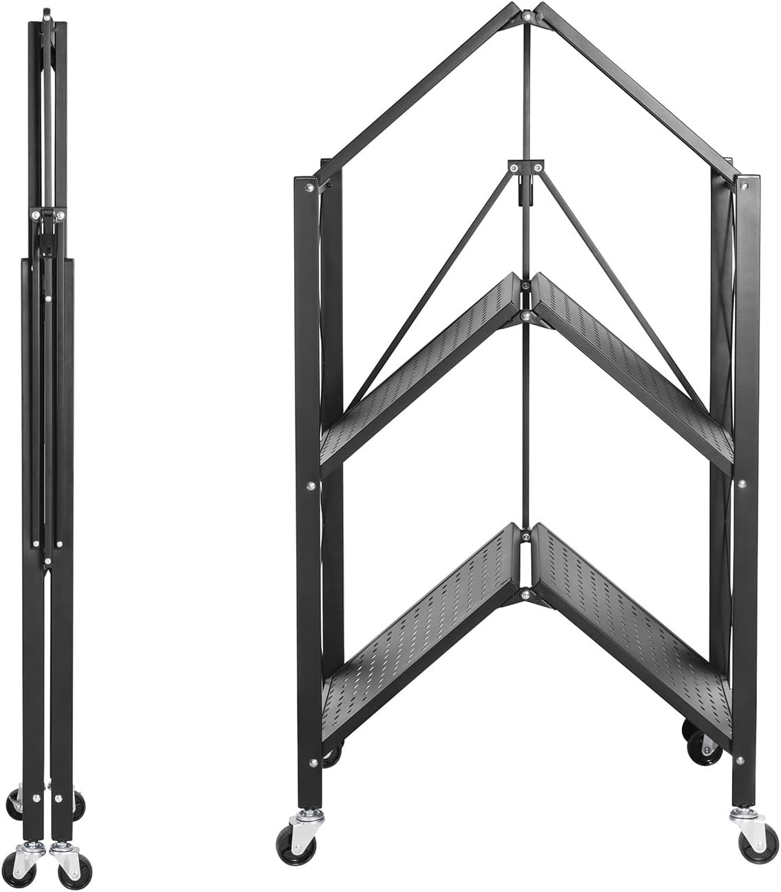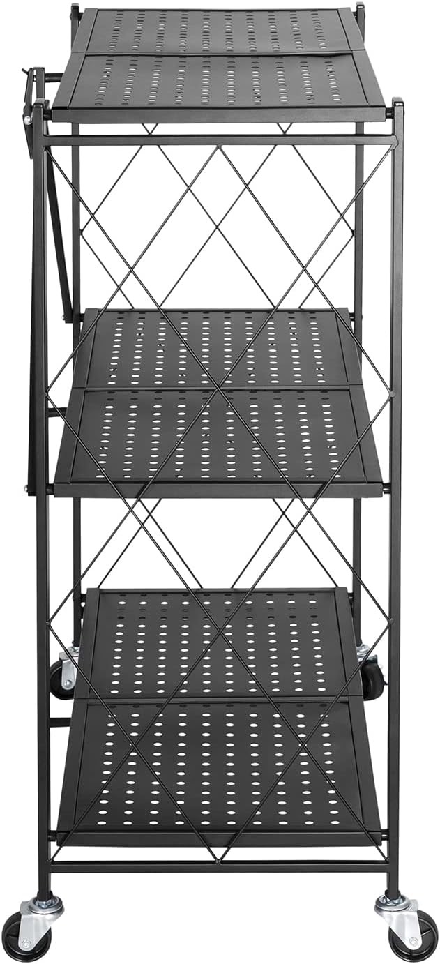 Bez alata, bez komplikacija! Ova polica dolazi potpuno sastavljena. Samo je rasklopite i spremna je za korištenje. Opremljena s 4 okrećuća kotačića, možete je premjestiti gdje god poželite. Dodatno, sklopivi bočni dijelovi osiguravaju sigurnost i stabilnost vaših stvari.