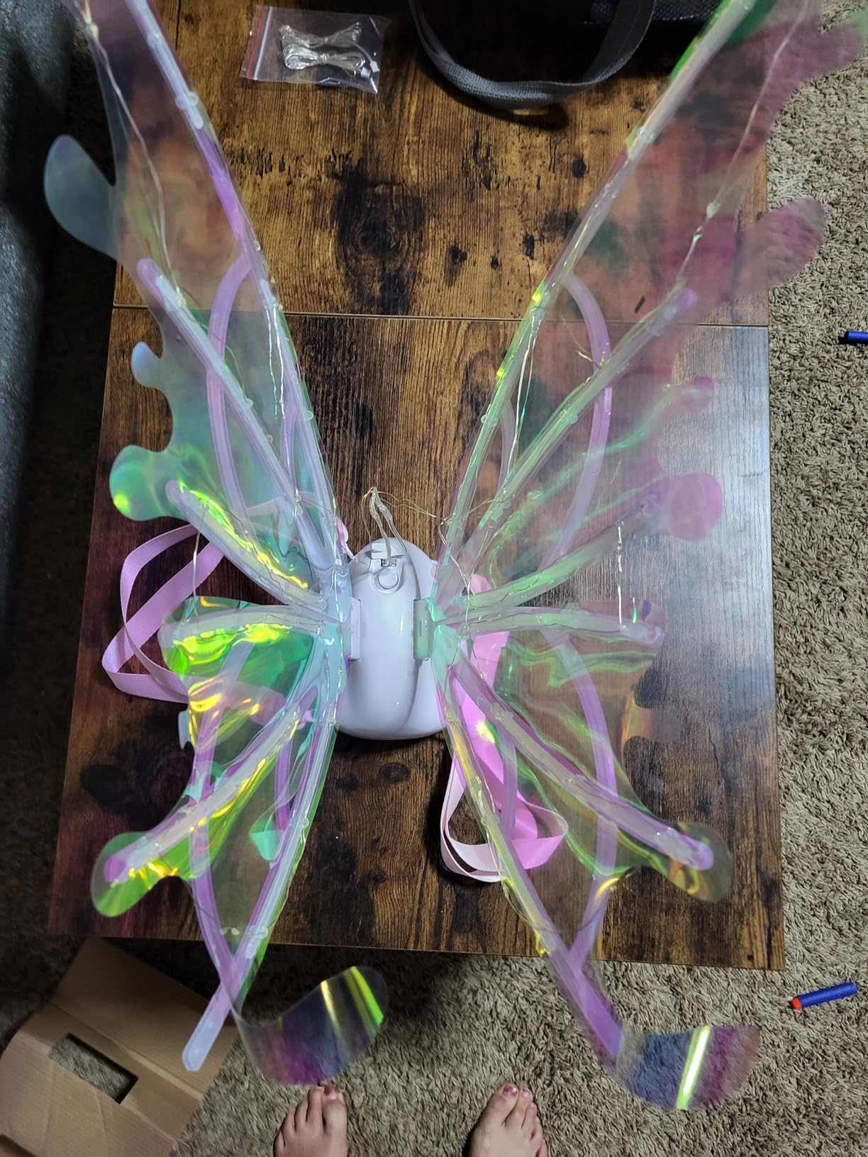 Krila imaju moderan i elegantan dizajn s laserskim svjetlucavim materijalom koji pri uključivanju mijenja boje. Automatsko mahanje krila stvara očaravajući efekt bajkovite vile koji privlači poglede u svakom prostoru. ✨🌈 💫 Savršen poklon za djevojčice koje sanjaju o tome da postanu bajkovite princeze i stvaraju nezaboravne uspomene. 👑🦋
