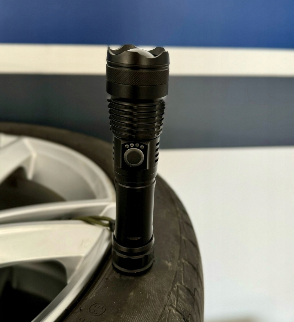 Ultra moćna baterijska svjetiljka SUPERFLASH daje intenzivno LED osvjetljenje s funkcijom zoom, što Vam omogućuje da fokusirate ili raširite snop svjetla prema potrebi — savršeno za otkrivanje putanje ili označavanje objekata u tami.