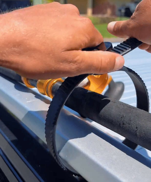 Dizajnirana za višekratnu upotrebu, kopča BUCKLE održiva je alternativa jednokratnim vezicama ili remenima. Njezin podesivi i međusobno poveziv dizajn omogućuje vam spajanje više traka zajedno, što je čini idealnom za veće ili nepravilno oblikovane predmete.