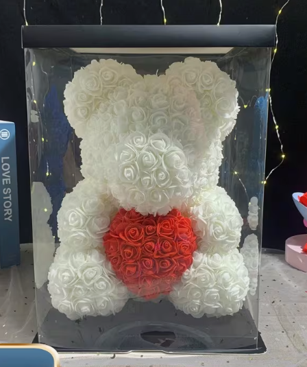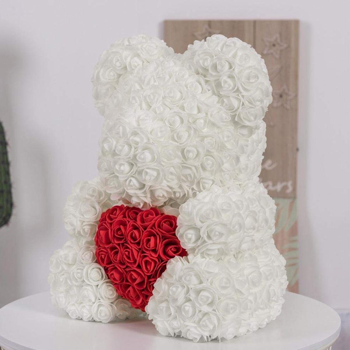 Medvjedić je ručno izrađen od umjetnih ruža koje zadržavaju svoj oblik i boju, pružajući dugotrajan dekorativni efekt. Idealan je izbor za sve koji žele poklon s trajnom vrijednošću i snažnom simbolikom emocija 🌹.