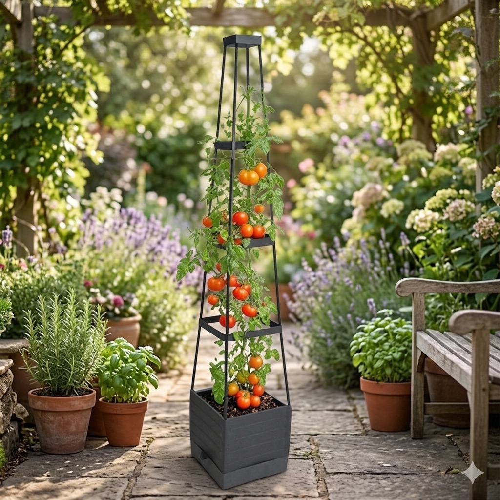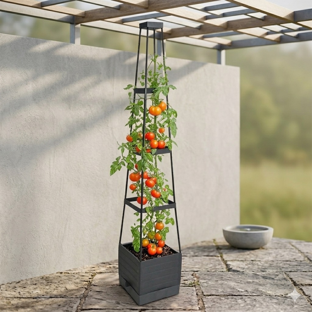 Savršeno za rajčice krastavce grah ruže i bršljan. Integrirana penjalica pruža snažnu vertikalnu potporu pomažući biljkama da rastu u visinu i štede prostor u vašem vrtu balkonu ili domu.